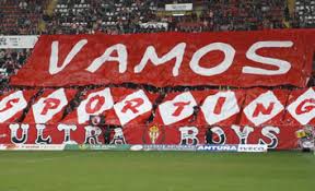 Esta es una de las mejores partes de El Molinon, la Grada Norte. Esta era la vieja grada de Coes, que muchos rojiblancos recordaremos. Tiene un escudo enorme, que queda perfectamente. Su antigüedad, posibilitó hacer 2.600 asiento mas paar el estadio. Una gran ventaja sin duda.